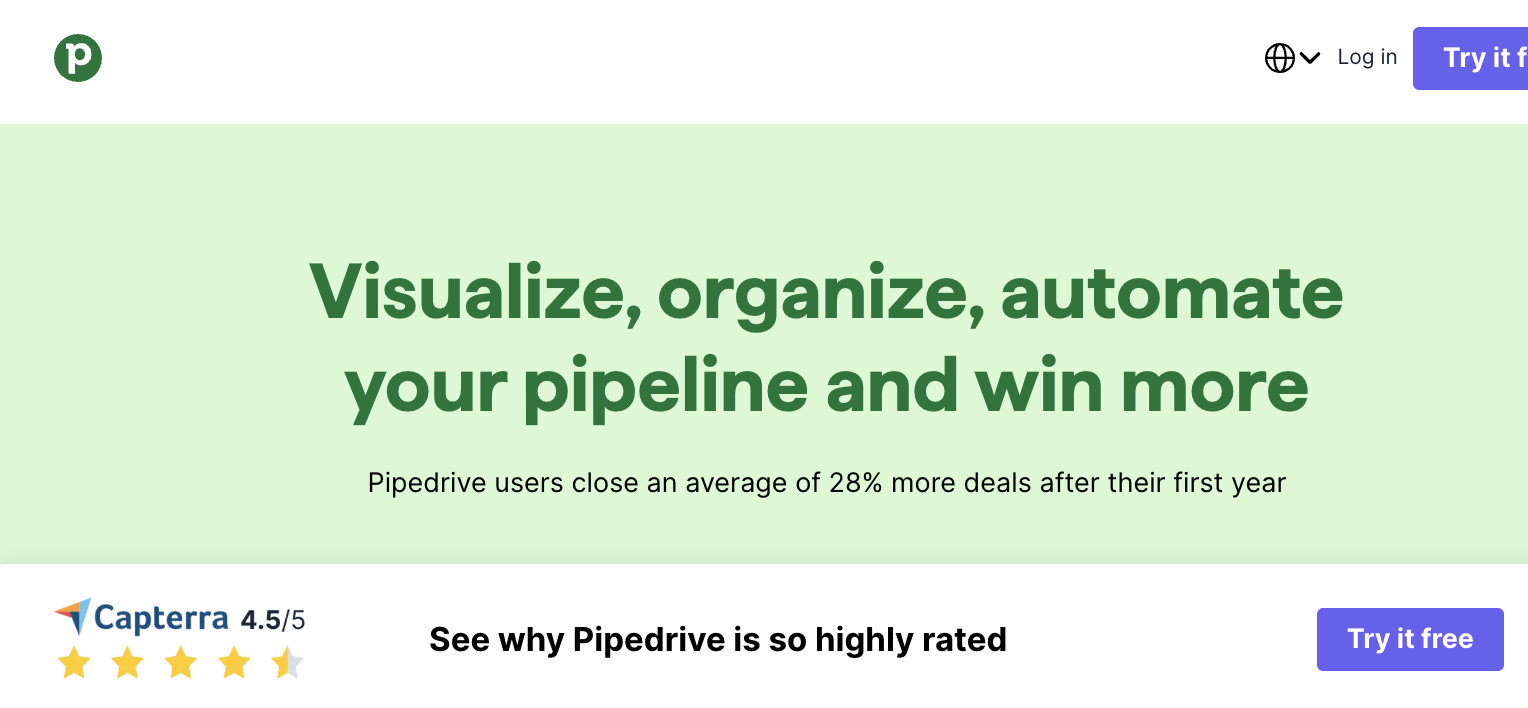 Example of Pipedrive using their Capterra ratign to their advantage.